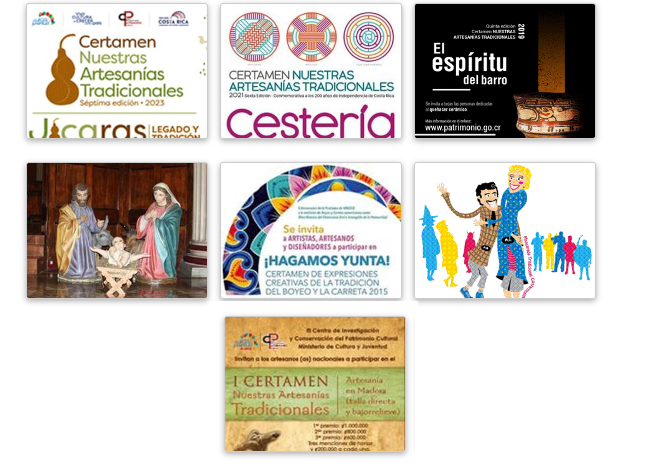 La Dirección Patrimonio Cultural, mediante la Unidad de Patrimonio Cultural Inmaterial, celebra cada dos años el Certamen Nuestras Artesanías Tradicionales, el cual fue creado en junio del 2011, por medio del Decreto Ejecutivo N°36610-C-2011. En cada edición se selecciona un oficio que refleje una técnica artesanal tradicional costarricense.